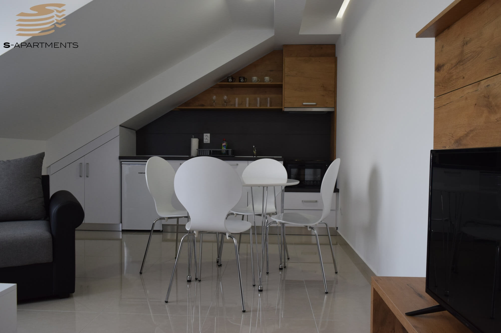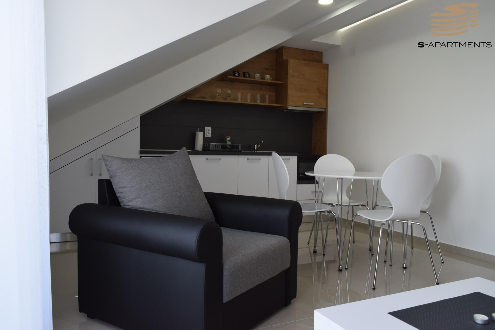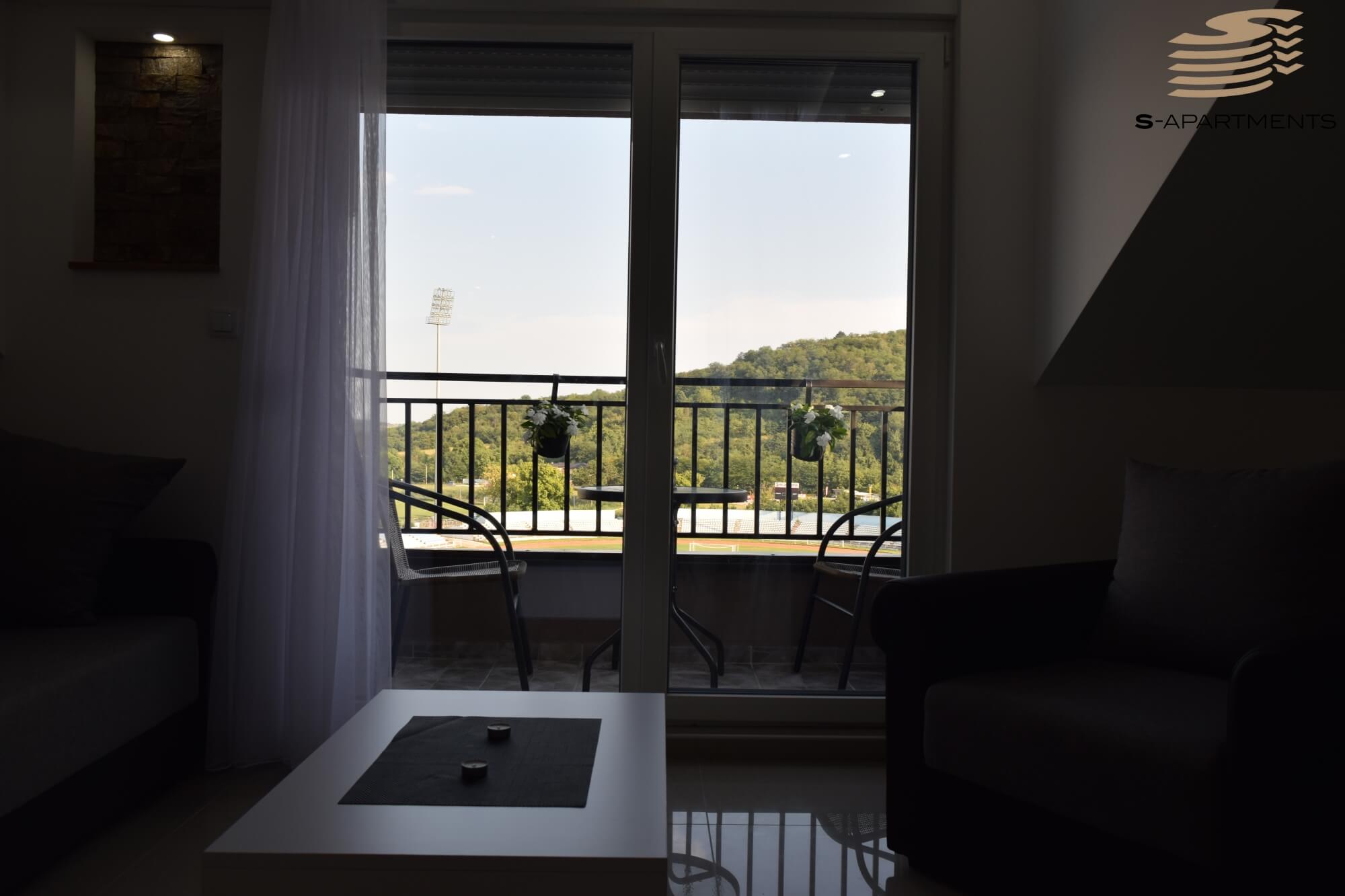 Apartman se nalazi u ulici Ćočetova E-1. U ovom apartmanu mogu boraviti 1-4 osobe. Vrlo je funkcionalan i svetao, sastoji se od dnevne sobe u sklopu sa potpuno opremljenom kuhinjom, trpezarijskim stolom i garniturom na razvlačenje, spavaće sobe sa francuskim ležajem, terasom i kupatila sa tuš kabinom. Opremljen je LED televizorom, kablovskom, klimom, WiFi internetom, posuđem i posteljinom. Zgrada poseduje lift i nalazi se pored stadiona FK Jagodine, nedaleko od Akva Parka, ZOO vrta, Muzeja voštanih figura, VIVO šoping centra i brojnih kafića i restorana.